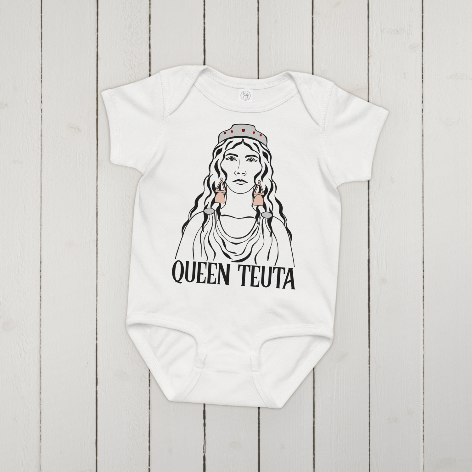 Queen Teuta Baby Bodysuit - White / 12M is backordered and will ship as soon as it is back in stock.